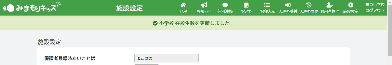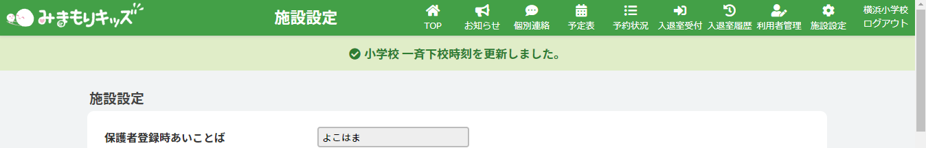 お迎えが必須となる時間を施設側で設定できます。設定した時刻を過ぎた時間を退室時刻とするとお迎えが必須となります。