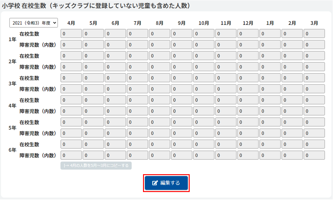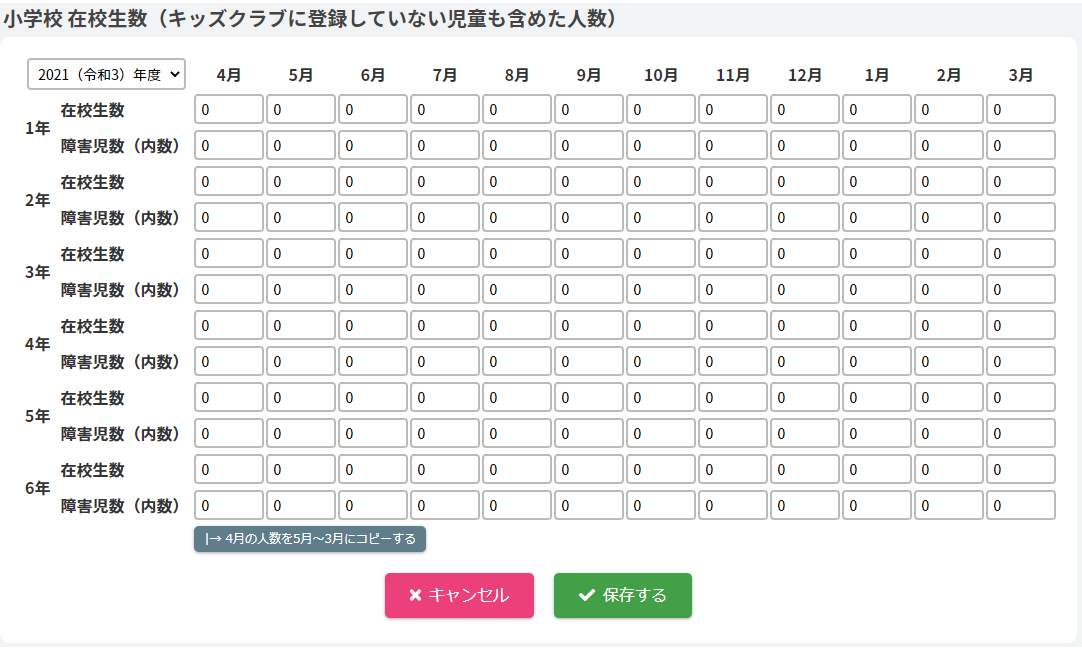 小学校に在籍している児童の人数です。(月報の作成に必要な情報となります。キッズクラブの登録者数ではありません。)