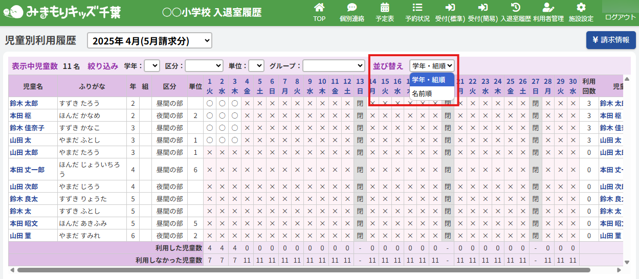 一覧の中から特定の児童を探しやすく整理するための機能です。