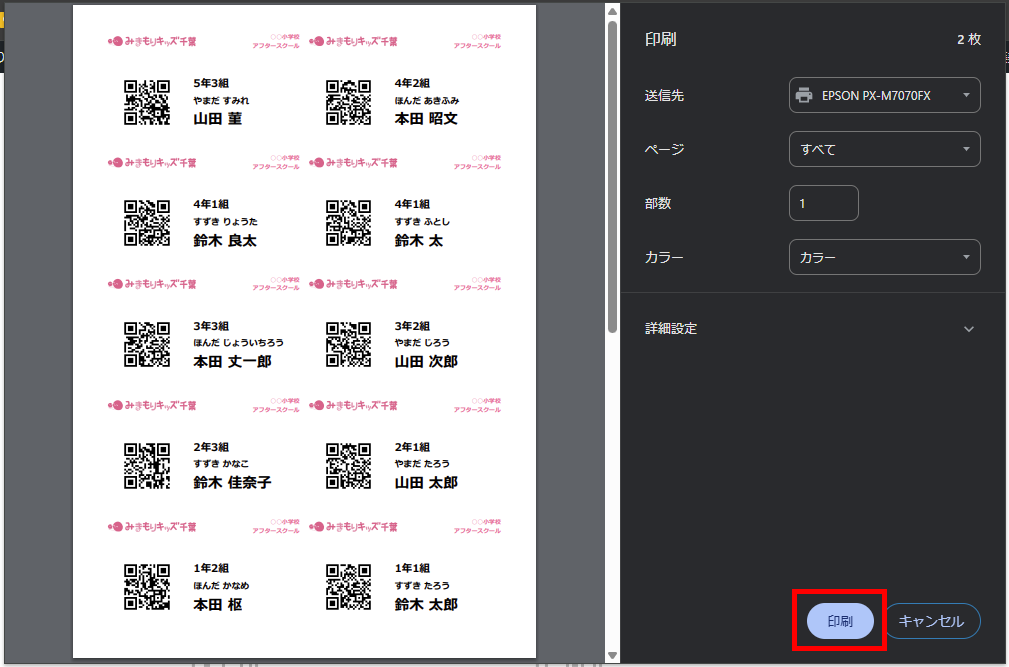 設定が完了したら、間違いがないか確認し、【印刷】をクリックしてください。